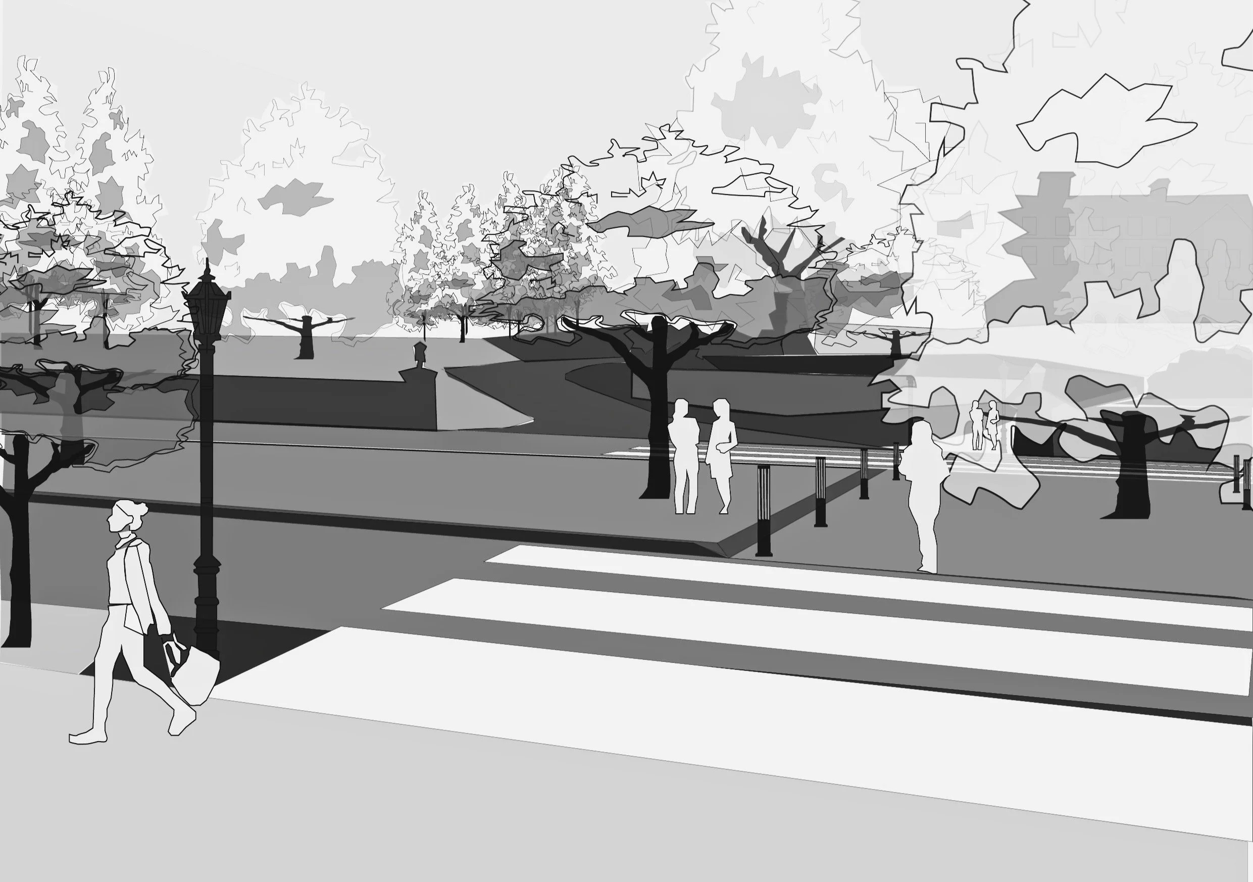 A collection of large, temperature-cooling trees that tolerate urban conditions was crucial to the comfortability and safety of pedestrians. The majority of trees in the proposed plant material are native to Connecticut or already existed in Connecticut College’s Arboretum. The proposal included rows of London Plane trees as means of separation between pedestrians and cars, Northeast Red Oaks, Tulip Poplars, Sugar Maples, Northern Catalpas, Saucer Magnolias, Cornelian Cherry Dogwoods, Winter Kind Hawthorns.